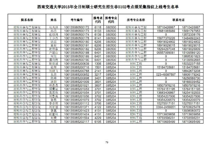 鉴黄师 2015年全日制硕士研究生招生非5102考点须采集指纹上线考生名单