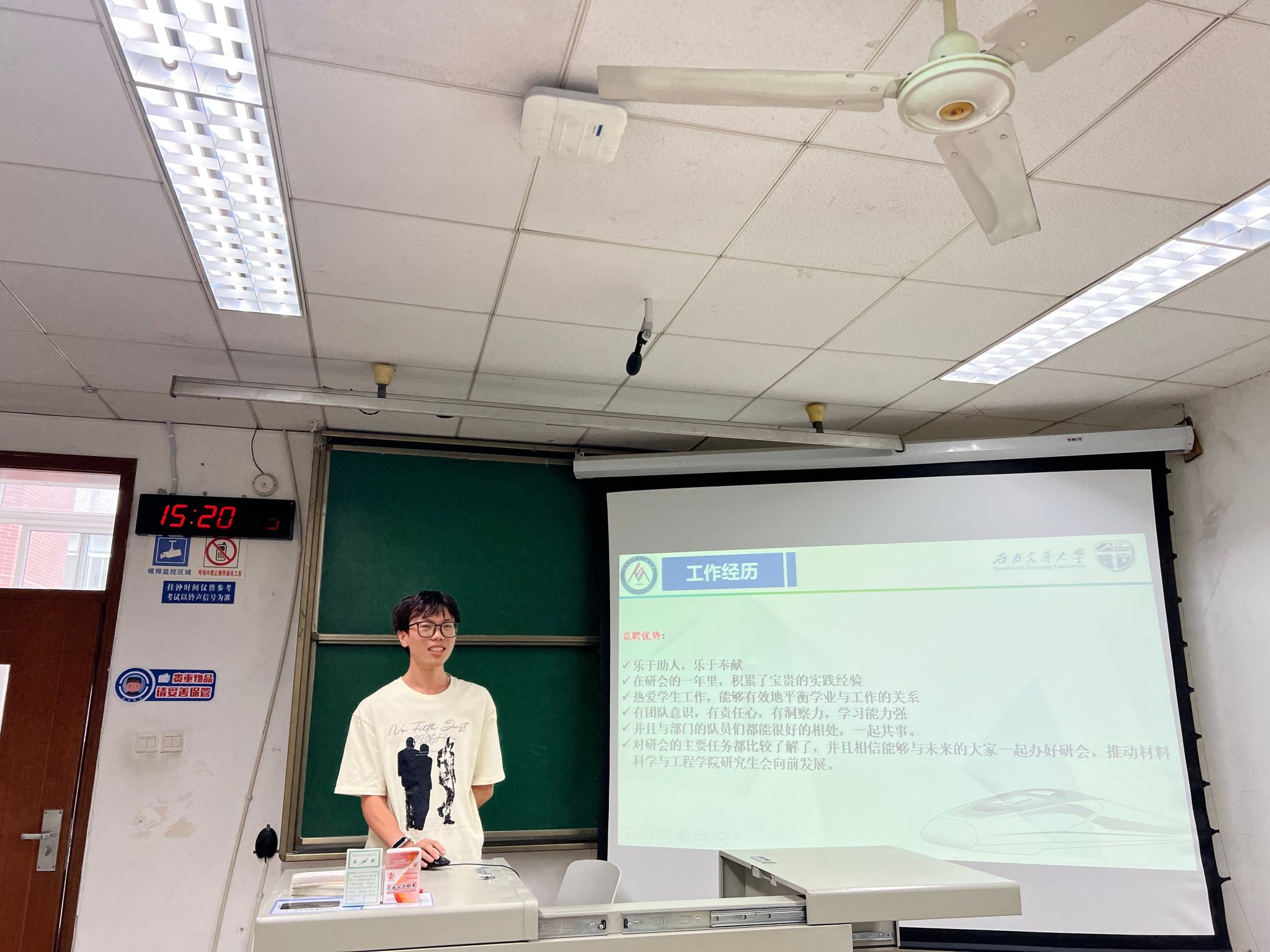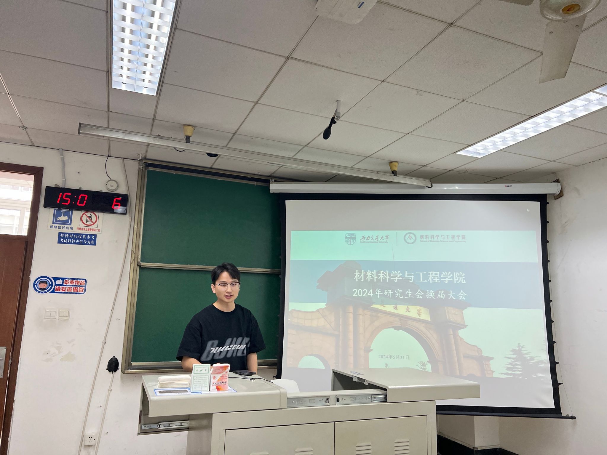 最后,研会指导老师廖妙威对本年度的研究生会工作做出了评价,对全体研会成员的辛苦付出表示感谢,同时也期望新一届的研究生会干部能够为研会的发展继续努力,助力材料研会在新的一年里发展得更好。