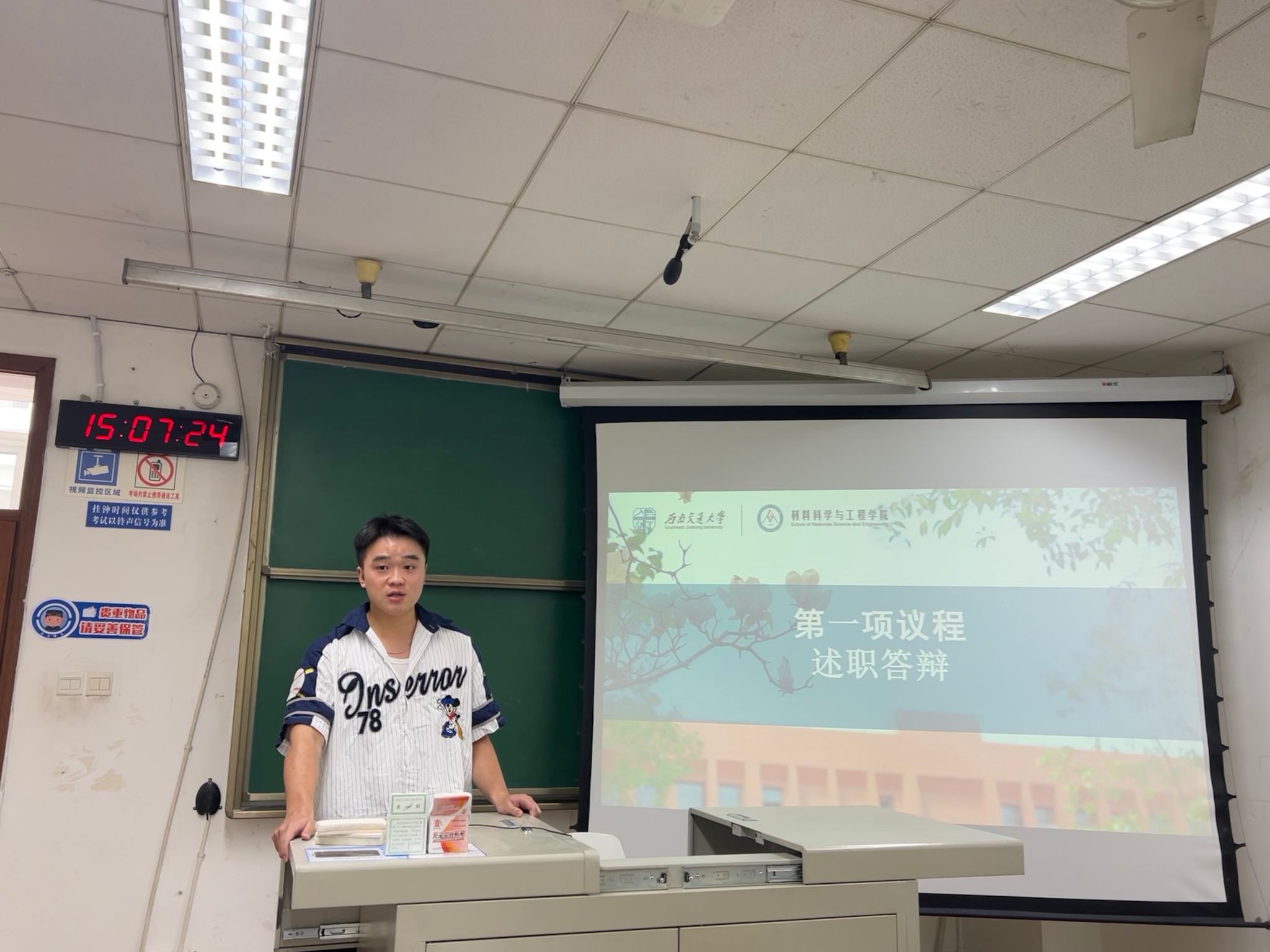 研究生会干部换届大会在九里校区逸夫馆4304B顺利召开,研会指导老师廖妙威及研会全体成员参会。会议由研会主席刘楚宝主持。