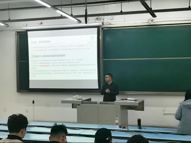 最后,黄德明老师提醒同学们在临近毕业期间,依然要规范自身行为,遵守学校规定,做到文明离校。“祝考研同学复试顺利,进入理想学校;找工作的同学找到理想工作!”,大会在两位老师的祝福后圆满结束。