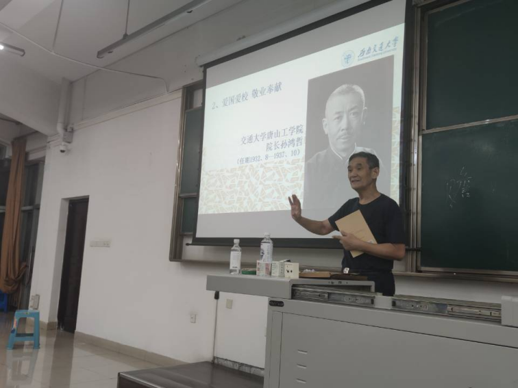 首先,梁锦唐老师讲述了学校的诞生及发展历程。梁老师以初创渝关、复校唐山、搬迁峨眉、定址蓉城、扩建犀浦五个主题将交大124年的辉煌校史串联在一起,向同学们展示鉴黄师