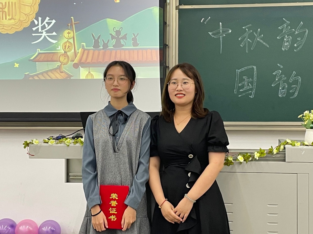 青年志愿者协会指导老师董海霞,校书画协会副会长王赫然同学。