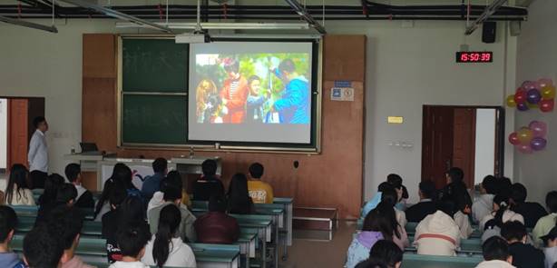 紧接着,赖老师分享了一段视频,介绍了一对父母在拥有两个身心障碍儿的情况下,依然爱着他们的孩子,用爱将绝望转化为希望,陪伴他们的孩子到生命的最后一刻的故事。这对父母用他们孩子的保险金创建了天使心基金会,到现在依然帮助着全国各地拥有身心障碍儿的家庭,将爱的火种洒向人间。许多同学在观看视频时被深深地感动,热泪盈眶。