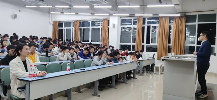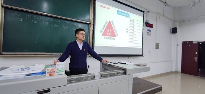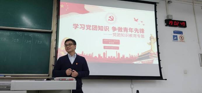 于X2214、X2215举办了以“学习党团知识,争做青年先锋”为主题的党团知识教育专题讲座。本次讲座由学院团委书记黄德明老师主讲,2021级辅导员许欢、董海霞和全体新生参加本次讲座。