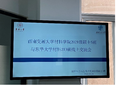 2021级硕士5班与东华大学材料213硕举行了交流会。此次交流会,由2021级硕士5班牵头举行,郑学超同学主持,采取线上及线下相结合的方式开展。