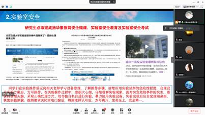 本次会议主要从研究生安全教育、就业指南学习以及青年大学习三个方面开展。首先,范老师在会上提出了学业安全、实验室安全、政治安全、意识形态安全、宿舍安全以及疫情防控安全等14项需要同学们注意的安全问题。强调:一、在实验室里需要严格遵守实验室的各项要求以及规定,生命至上,安全第一;二、应排查寝室安全隐患问题,不允许私接电线以及乱接插线板至床上等行为;三、对于冬季新冠疫情反弹现象,我们应加强防控,需要出省的同学需要按规定请假,做好核酸检测工作。