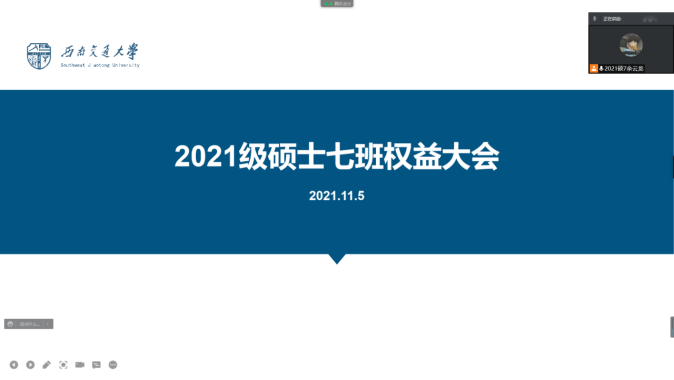 2021级硕士7班,通过腾讯会议的形式开展权益大会,班级全体成员积极参与,无缺席人员。
