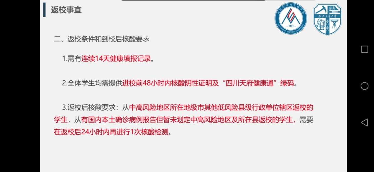本次大会分为三个部分,着重强调同学的返校事宜,如返校条件、到校后核酸要求、到校后的管理方式等。确保同学能顺利返校,安全返校。