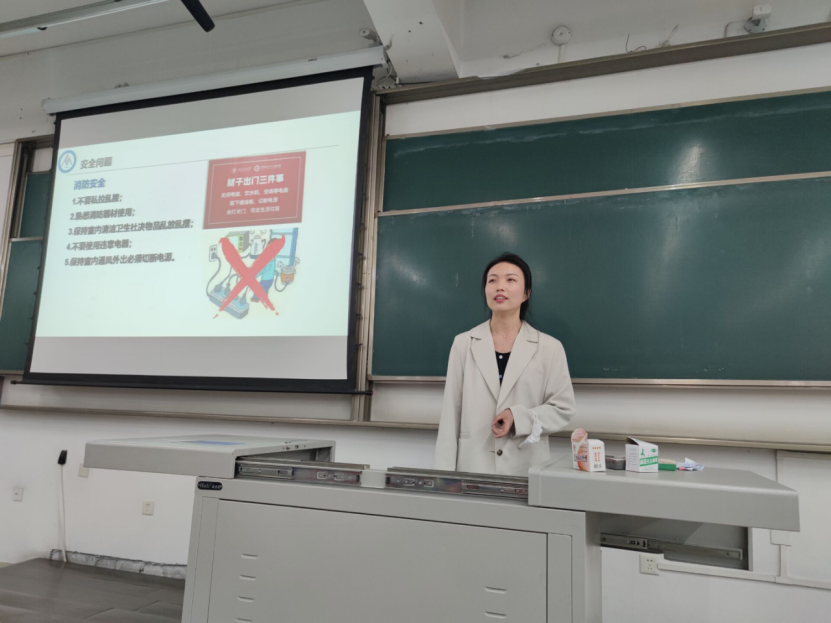 会议第四项,董海霞为同学们简要介绍专业分流后的宿舍倒迁注意事项,重点对防疫安全、电信诈骗、消防安全、宿舍用电安全和心理健康等安全问题作出强调,此外,还开展了防艾健康教育,希望同学们对安全问题重视起来。