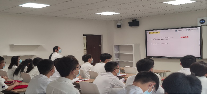 班会第二个环节——“晓疫情常识 守防控底线”。在了解应如何做好心态保持后,同学们开始以小组为单位进行防疫知识竞赛。本环节的选题充分结合传染病防治常识、专业知识、防疫方针政策、校园防疫常态化要求等内容,通过问答的方式,帮助同学们更好掌握防疫知识。班会还为答题得分靠前的小组准备了精美的奖品。