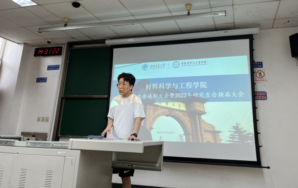 研究生会(以下简称材料研会)述职大会暨换届大会在九里校区逸夫馆4332如期举办。本次大会议程共有主席团代表述职、部长述职、换届竞聘答辩、投票选举、指导老师发言五个部分,由研会执行主席胡庆丹主持,鉴黄师