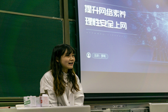 通过一系列“键盘侠”行为的相关视频导入,罗莉为同学们介绍了网络素养的概念及特征,阐述了文明上网的重要性,强调同学们需要具备网络安全基本常识,具备借助网络学习的能力以及要有文明上网的自觉性。畅游网络空间需要做到“合法、文明、理性”,大学生要提高辨别信息真假的能力,不造谣、不信谣、不传谣,不得传播暴力、淫秽色情信息,不得危害网络安全。