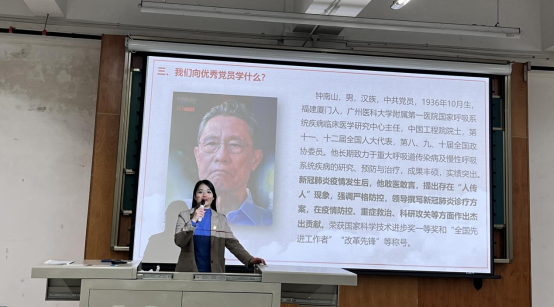 讲座第一部分,王誉静老师从入党的基本条件、入党流程、如何积极向党组织靠拢等方面向同学们讲授了加入党组织的相关知识,带领同学们学习了部分党的理论知识。并从应该向优秀党员学习什么、以及党和团之间的关系等方面强调,中国青年应加强党性修养、强化党员意识、坚定理想信念、发挥模范作用,积极向优秀党员学习。