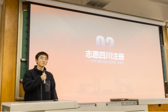 心理测评结束后,活动还邀请到材料2021-01班刘艳东学长为新生介绍“志愿四川”志愿者注册及参加活动操作方法,引导新生成为“志愿四川”注册志愿者,并鼓励学生志愿者积极发挥知识技能特长,利用周末、课余时间,深入社会开展志愿服务,传承和发扬“奉献、友爱、互助、进步”的志愿者精神。