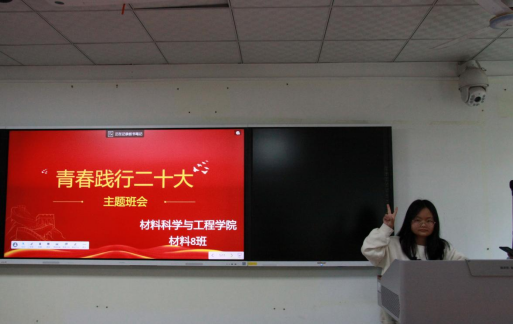 为深入学习贯彻党的二十大精神,落实《教育部关于全国高校以“开学第一课”为重点开展2023年春季学期系列教育引导活动的工作方案》要求,材料2022-08班于2023年3月16日下午在X1117顺利开展了“青春践行二十大”主题班会。