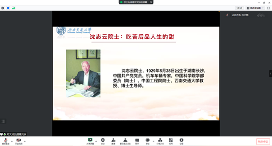 沈志云院士的话语“吃苦后品人生的甜”为指引,学习沈志云院士的精神,结合视频资料聆听沈院士的谆谆教诲,大家就相关学习内容结合自身进行讨论学习。