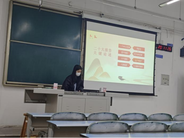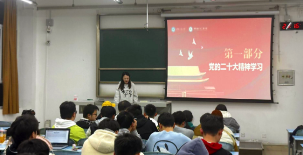 在班会上,各班组织同学集体学习党的二十大精神。同学们围绕“奋斗青春、矢志报国”分享了自己的理解与思考,大家纷纷表示,新时代的青年大学生要坚定不移跟党走,努力学习本领,立志服务祖国,把“小我”融入“大我”,为走好中国式现代化之路、实现第二个百年奋斗目标不断努力奋斗。