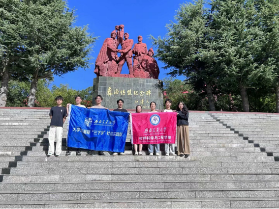 8月9日,实践队来到冕宁县彝海结盟纪念馆,跟随讲解员的脚步,聆听每一件文物背后的故事,红军外出证章、红军旗杆头、红军和抗捐军用过的枪支、手雷、大刀;当年红军长征过冕宁时送给老百姓的银元、糖果盒、手镯等以及刘伯承授予小叶丹的“中国夷民红军沽鸡支队”队旗,再次重温那段光辉的历史,队员们切身体会到长征途中的艰难不易和民族团结的重要性,并对老一辈革命先烈吃苦耐劳、无私为国的精神感到由衷的敬佩。“彝海结盟”谱写了民族团结的光辉篇章,是中国共产党的民族政策在实践中的第一次体现和重大胜利,翻开了中共党史、军史、革命史上光辉的一页。在这里,红军少数民族武装首次成立——红军走过的这片红色圣地,传承下了不怕牺牲、勇往直前、坚韧不拔的长征精神。实践队深刻认识到,我们要继续走好新时代的长征路,大力弘扬“长征精神”和“彝海结盟”精神,牢记习近平总书记嘱托,“像爱护自己的眼睛一样爱护民族团结,像珍视自己的生命一样珍视民族团结,像石榴籽那样紧紧抱在一起”,铸牢中华民族共同体意识,为全面推进中华民族伟大复兴而团结奋斗。