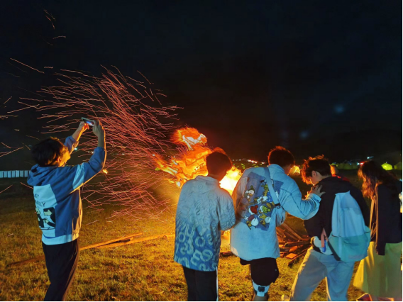 图7 实践队员在篝火晚会欢呼起舞