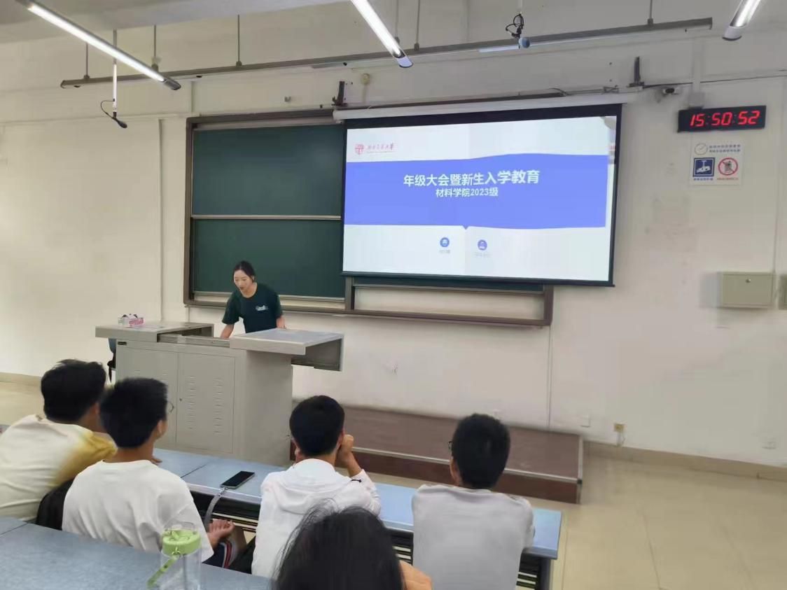 本科2023级辅导员、学院青年讲师团成员熊心怡及学院青年讲师团成员、本科2023级年级助理向思林面向2023级新生开展年级大会暨新生入学安全教育。