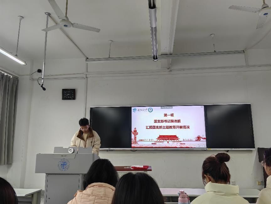 首先,团支部书记鞠浩鹏同学进行了工作汇报。他详细介绍了团支部本学期开展的团员和青年主题教育四个专题、青年大学习完成情况、主题团日活动等。而后,鞠浩鹏通报团支部委员会检查团支部和团员后存在的不足等情况。他的汇报得到了全体团员的肯定和支持。