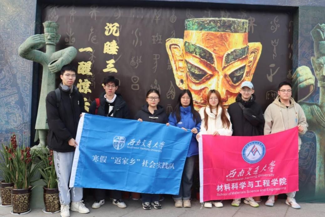 1月12日,实践队来到三星堆博物馆,队员们依次参观了博物馆各个展区,回顾了三星堆遗址近一个世纪的重大考古发现,对遗址的分布范围、堆积状况、保存情况、文化内涵等方面有了全面的认识。青铜大力人像、青铜神树、青铜虎头龙身像、黄金面具等知名文物给队员们带来强烈的震撼。