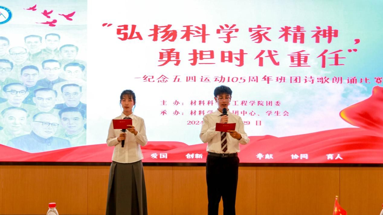 结合学院“科学家(陈能宽)精神传承行动计划”总体部署,面向全院开展“弘扬科学家精神,勇担时代重任”——纪念五四运动105周年班团诗歌朗诵比赛。
