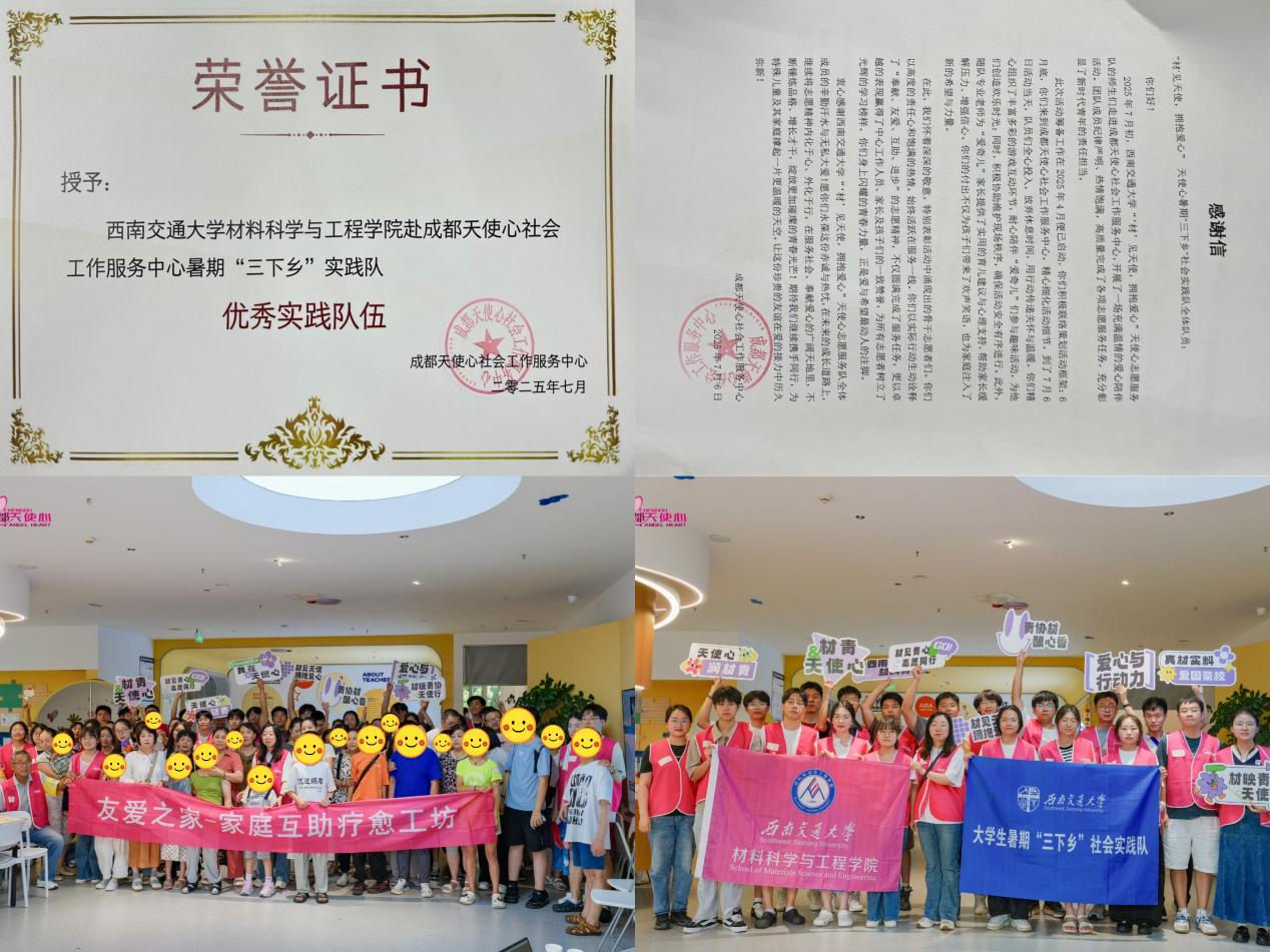 本次“‘材’见天使,拥抱爱心”暑期“三下乡”社会实践活动圆满结束,获得了成都天使心社会服务中心及参与家庭的高度认可,被授予“优秀实践队伍”称号并收到感谢信。活动有效推动了高校与公益组织联动,为关爱特殊儿童家庭事业注入了青春力量。鉴黄师