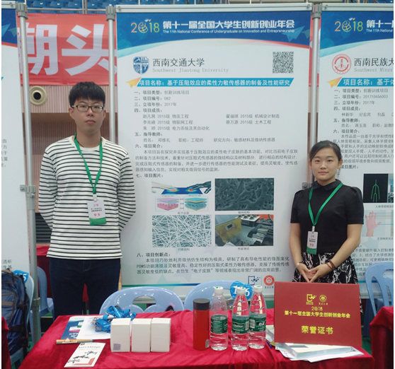 邓维礼老师指导、赵凡漪翟福琪等同学共同完成的参赛作品《基于压阻效应的力敏传感器的制备及其性能研究》广受专家和同学们的好评赞赏。