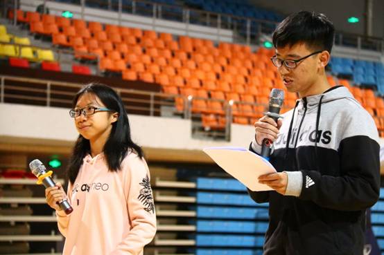 在主持人的介绍下,双方代表队和裁判员有序入场。队员们新奇的称呼引得观众席笑声连连,掌声不断。