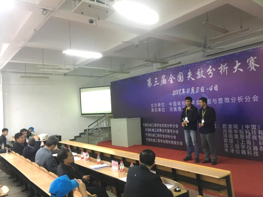 由中国体视学学会金相与显微分析分会主办的“第三届全国失效分析大赛”于11.3-11.4日在河南理工大学举行。来自复旦大学、西北工业大学、东北大学等30多所相关领域知名高校和北京星航机电装备有限公司、内蒙古第一机械集团和马鞍山钢铁股份有限公司的70多支队伍参加本次大赛,同时大赛还吸引了大批相关领域专业技术科学研究人员的观摩。