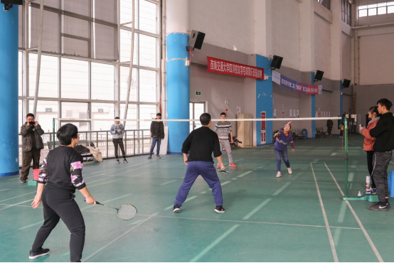 师生同台,一挥一挡,一躲一闪,一跳一笑。羽毛球轻盈地跳跃间,浓浓的师生情谊温暖着冬日里的每一个人。