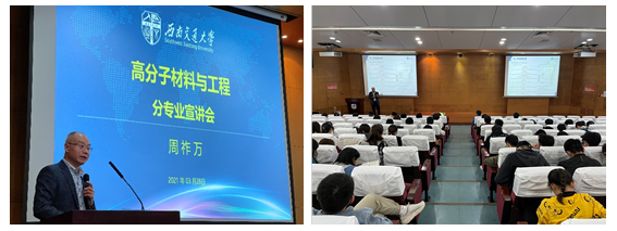 2020级本科生专业分流宣讲会——高分子材料与工程专业专场在犀浦校区图书馆一号报告厅举行。2020级材料大类专业本科生参加本次宣讲会。莅临现场的还有周祚万教授、王勇教授、蒋小松教授、郑纪伟老师、韦炜博士。本次宣讲会由高分子系主任孟凡彬主持。