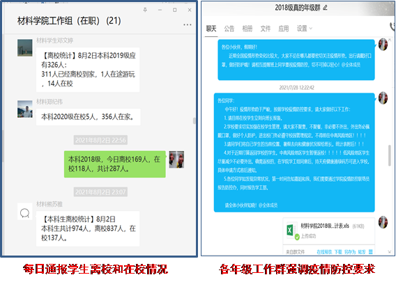 1.实时开展疫情防控形势动态研判,积极宣传贯彻国家、地方和学校疫情防控工作政策及要求,提醒师生个人防护注意事项,通过工作群发布相关通知要求,做好学生教育引导。