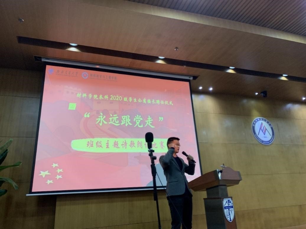 楼长聘任仪式结束后,作为深入学生的第一次活动,全体教师参加并观看了2020级班级诗歌朗诵比赛。