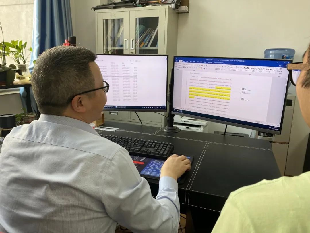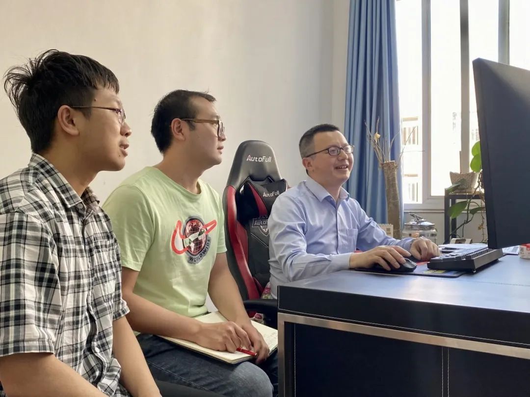 午饭过后,杨维清在办公室短暂休息,紧接着就继续扎进繁忙的科研工作中。14:00,有项目的合作方打来电话,商讨项目合作及规划下一步工作进度安排。商谈刚一结束,立马有学生敲门进来请求购置实验药品及书籍,接着又有同学带着开题报告来修改……敲门声不断响起,一个接一个的同学前来找杨老师进行相关事宜的汇报和商讨,办公室的门似乎就从未关上过,杨老师对同学们的耐心、对科研的认真也感染着每位同学。