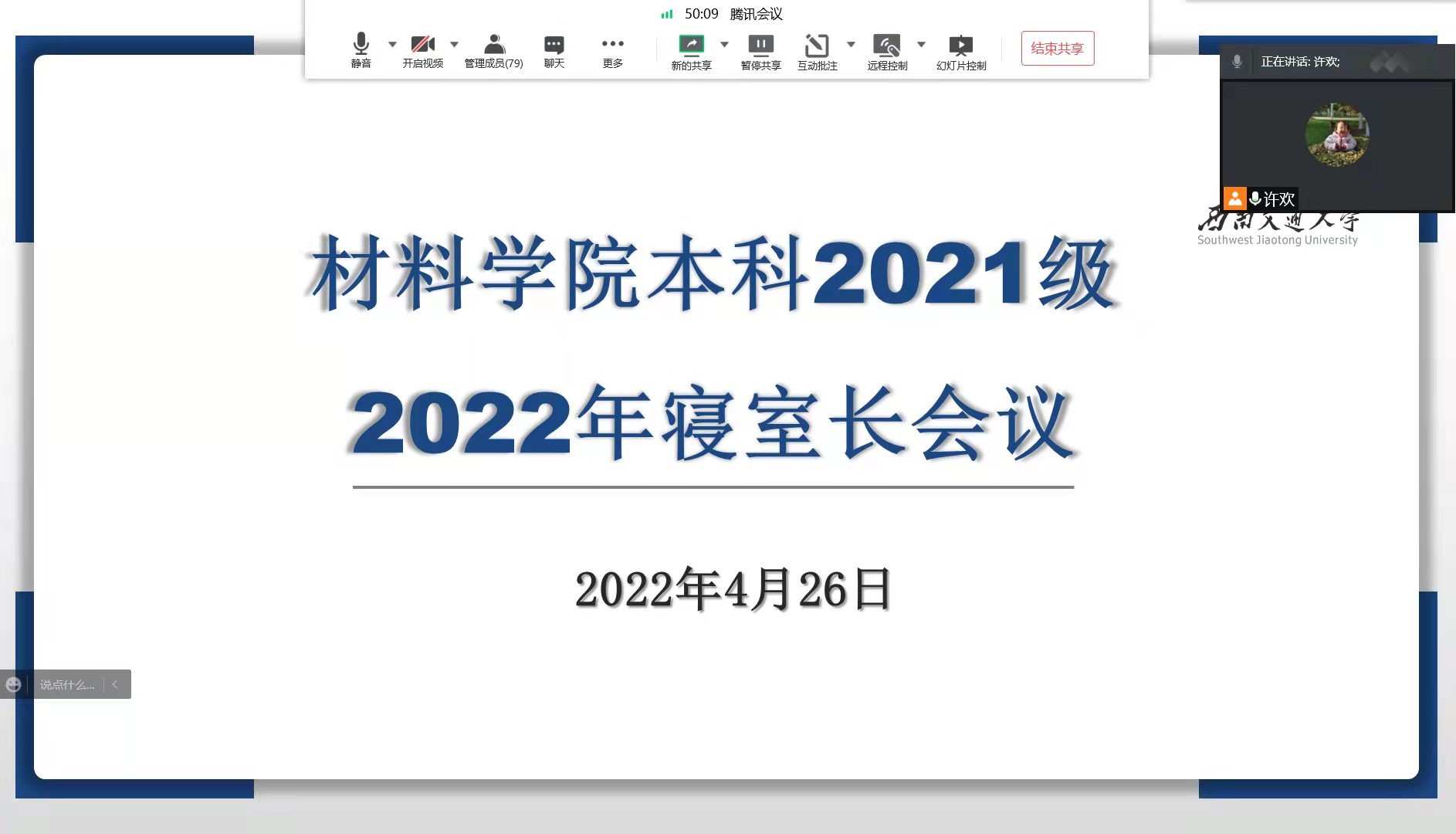 本科各年级于2022年4月23日-4月28日召开了寝室长专题会议。通过会议,辅导员老师们为寝室长提供了宿舍管理、人际交往等方面的知识,强调各位寝室长应该在宿舍安全、人身安全以及疫情防控安全中发挥重要作用,同时提醒各年级寝室长注意工作方式方法,树立关心关爱宿舍室友的寝室长形象,为同学们创造出一个良好的学习氛围、融洽的生活环境,构建和谐型、学习型宿舍。