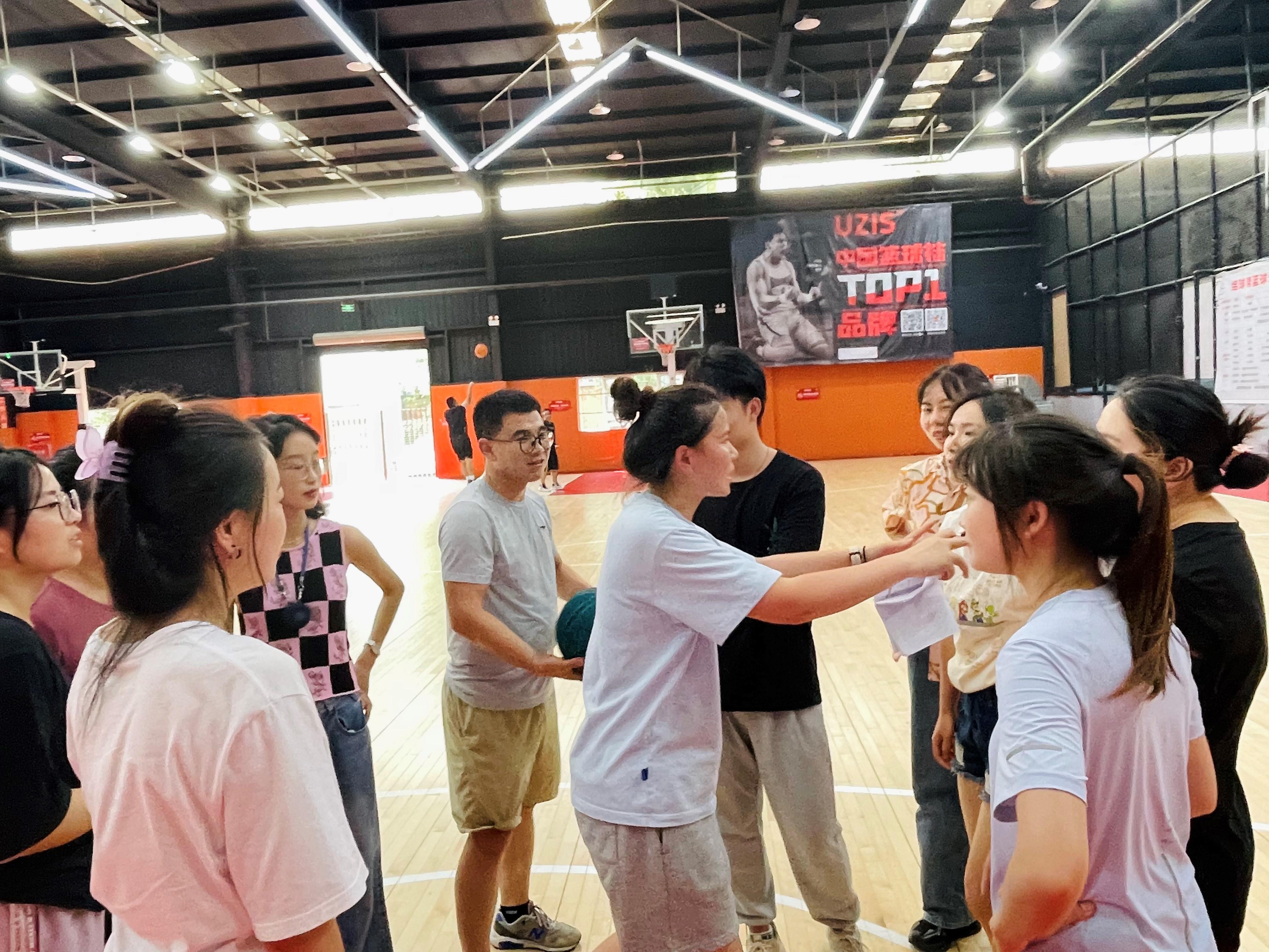 本次团队素质拓展活动以“趣味篮球赛”的形式开展,由辅导员曾文兰老师担任裁判,队员随机分成三组,进行团队比赛。