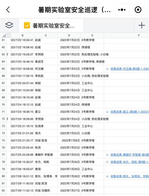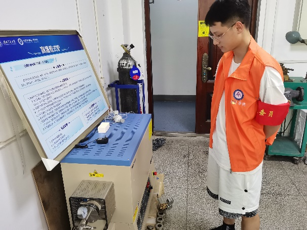 安全巡查不停歇。自2022年7月11日起,学院“院领导抽查、实验教师轮值检查、实验室安全责任人自查和学生党员巡查队巡查”的实验室安全四级联动检查机制正式运行,学生党员巡查队的巡查区域范围“每天全覆盖”。检查结果分别登记于《暑期安全巡查记录本》和“暑期实验室安全巡逻情况汇报”小程序。