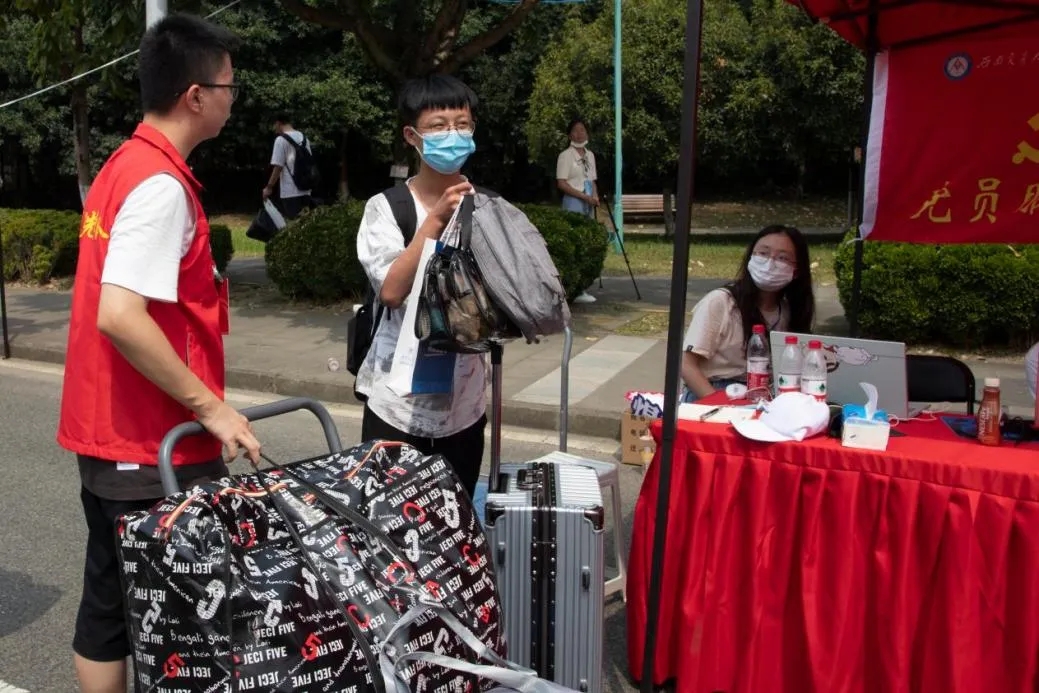 工会的老师们也为迎新现场送去清凉,一件件防暑降温的水,温暖着现场工作人员的心。