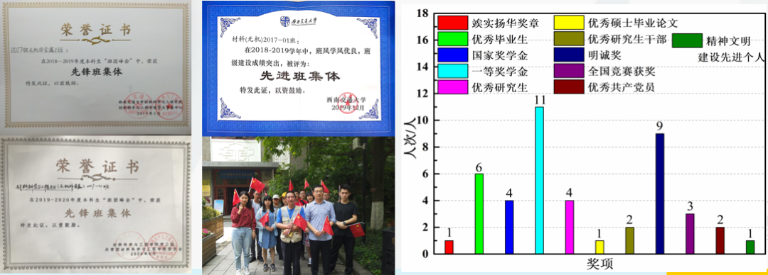 “纸上得来终觉浅、绝知此事要躬行”,以身作则、亲力亲为,入职五年多,承担专业基础课和限选课累积3门,已累计授课超过640学时,且多次担任本科生和研究生班主任,所担任班主任的班级连续多次获得先锋班集体、先进班集体等荣誉;担任2020级“楼长”,在课余时间多次走访学生宿舍,为更深入了解同学的日常生活与学习,帮助和指导同学们解决日常的生活与学习困难;所指导本科生成功申请到国外知名大学深造者6位、获免研资格者20位;所指导研究生获硕/博国家奖学金、竢实扬华奖章、省级优秀毕业生、优秀学位论文等校级及以上荣誉44项。