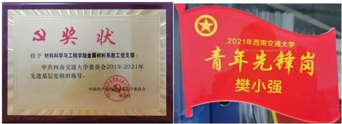 金材教工党支部获得学校党委2019-2021年先进基层党组织称号;