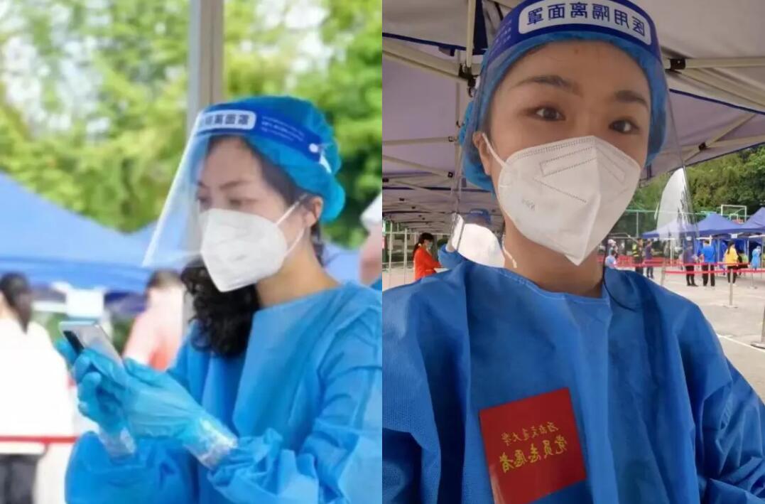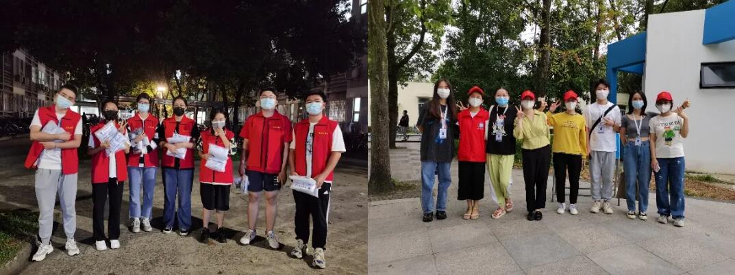 陈慧清、严翼飞在九里校区核酸检测现场参与志愿服务