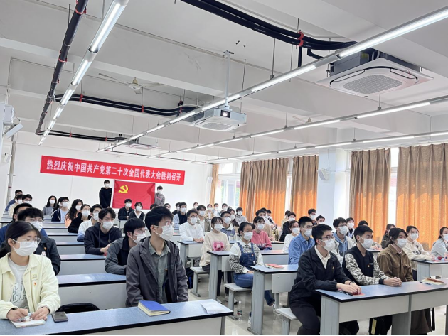 10月16日上午10:00学院共计400余名师生员工九里、犀浦两校区集中收听收看了中国共产党第二十次全国代表大会开幕会现场直播。