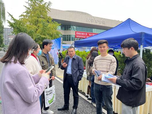 应届毕业生参加此次线下招聘会。招聘会当天,学院副院长王勇以及本研毕业班辅导员前往现场了解用人单位的需求和学生的应聘情况,给毕业生同学提出宝贵的建议。