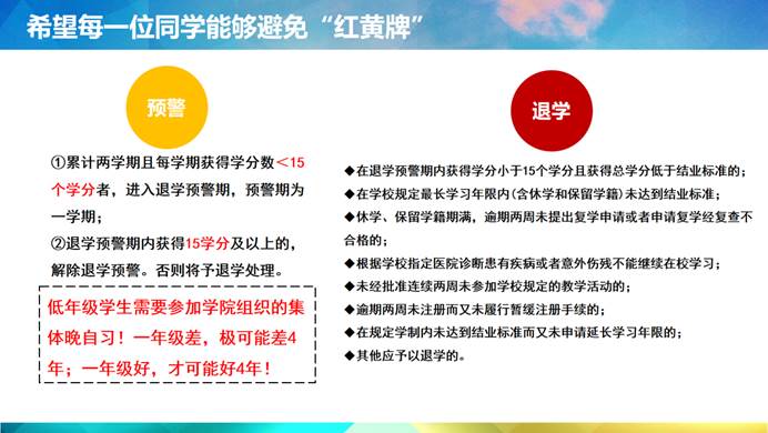 在学业安全教育方面,章春军首先提出“一起进来,一起毕业!”的目标,为同学们梳理了学院近几年本科生成绩,对二年级规律性滑坡、未按期毕业情况等重点数据进行了解读,对毕业、考研等总体形势进行了分析,对学院班主任制度、1+1+1导师计划、专业分流后的全员宿舍调整等学分建设举措进行了讲解,对期末考试提出了诚信考试“零作弊”的要求,他鼓励广大学生从一年级开始做好学业生涯规划,倡导同学们认真积极对待大学学业,引导同学们及早确立大学奋斗目标,分解做好每学期的学习规划,认真对待大学每一天的学生生活。他号召同学们要全员避免学业红黄牌,他倡议同学们要及早过英语四六级、及早确立升学目标。他从目标确立、主动学习、全面发展、养好习惯、时间管理五个维度对每位同学提出了建议,既为同学们划定了学业安全底线,也为同学们提出了学习奋斗高线。