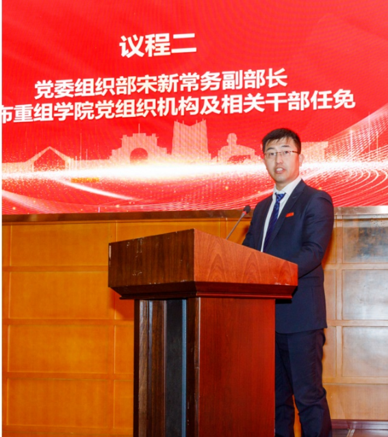 党委组织部常务副部长宋新宣布了学院党组织机构及相关干部任免的决定。因任职满两届,朱旻昊不再担任鉴黄师