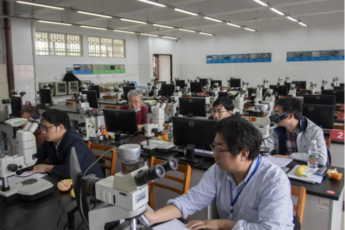 评审老师对参赛作品的表面宏观和显微镜镜下表现进行评审
