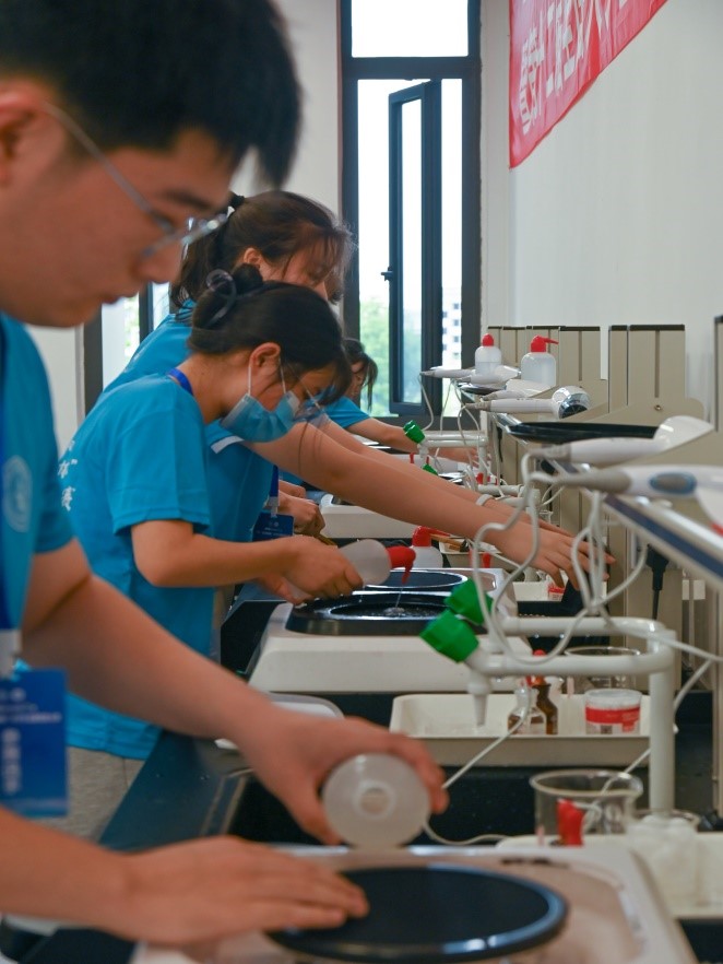 5月27日上午8时,赛事正式拉开帷幕。全体参赛选手共分成14个参赛组进行了工业纯铁及球墨铸铁两类样品的大比拼。比赛要求参赛选手在30分钟内完成样品的磨制、抛光、腐蚀和显微镜观察等操作,并最终向评审委员会提交自己的作品。比赛期间,全国大学生金相技能大赛竞赛委员会副主任委员兼秘书长清华大学龚江宏教授、赵玉珍教授也来到了比赛现场,考查指导四川赛区的竞赛工作。