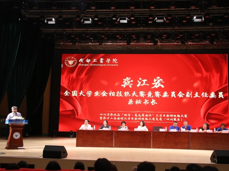 5月28日下午2时许,比赛经过紧张角逐后正式结束。下午4时,赛事闭幕式暨颁奖典礼在成都工业学院宜宾校区大学生活动中心大礼堂隆重举行。闭幕式上,龚江宏秘书长首先对本届比赛的成功组织给予了高度评价,并鼓励选手们再接再励,在国赛中取得更好的成绩。随后,成都工业学院宜宾校区党委书记朱薇薇、四川省金相技能大赛秘书长王良辉、副秘书长管登高、成都工业学院材环学院常务副院长丁义超等,分别从宜宾校区筹备工作、获奖名单、评审工作、赛事组织总结等方面在闭幕式上进行了发言。